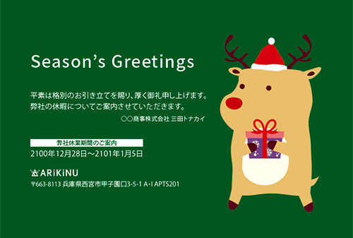 伝統的なモチーフを基調としながらも、ホリデーカードとしての華やぎや楽しさを感じられるよう、全体のバランスにこだわって仕上げました。