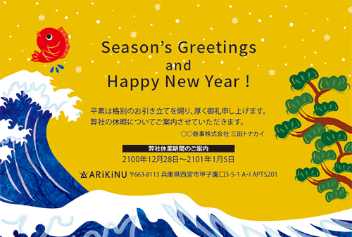 松と高波のポップな日本画風ホリデーカードを作成しました。